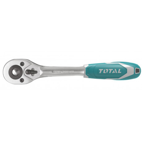 Храповый ключ Total THT106126 – это универсальный инструмент, позволяющий производить огромный перечень ремонтных работ, в которых необходимо раскручивать и закручивать гайки, болты и другие подобные элементы. Данный ключ выполнен из высокопрочного хром-ванадий-молибденового сплава и оснащён удобной эргономичной рукояткой из термопластичной резины. Применяется с головками для работы с резьбовыми соединениями. Присоединение и фиксация головок осуществляется нажатием на кнопку с противоположной стороны ключа. Длина ключа составляет 260 мм. Механизм на 45 зубьев обеспечивает плавный ход.