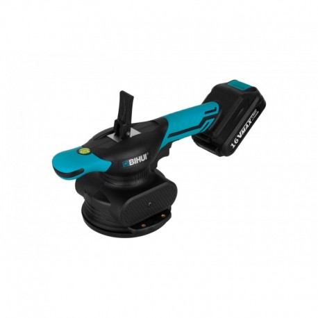 Вибрационная присоска (виброприсоска) BIHUI LFTBU для укладки плитки – это многофункциональная машинка для укладки, выравнивания с вибрацией и переноски плитки. Присоска представляет собой чашу из прочного пластика, внутри которой помещена прочная резиновая нескользящая мембрана, обеспечивающая разряжение необходимое для надежного удержания изделий весом до 40кг. Диаметр чаши 115мм. Разряжение в ней (вакуум) создается и снимается одним нажатием рычажка. Изготавливается из прочного технического полимера. Эргономичная рукоятка разработана для большего удобства и безопасности работ.Работает виброприсоска от встроенного литий-ионного аккумулятора (Li-ion) 16,8V, 2000mAh. На корпусе есть индикатор уровня заряда.
