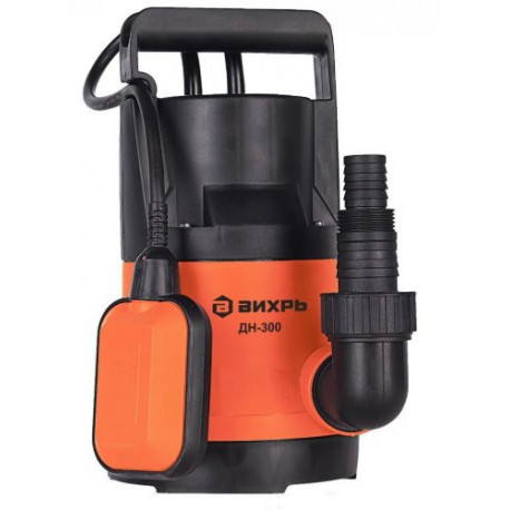Дренажный насос ВИХРЬ ДН-300 предназначен для откачивания и отведении воды и стоков с инородными примесями из различных водоёмов и резервуаров (котлованов, шахт, сливных ям и т.д). С их помощью можно выкачивать воду в случае подтопления жилых помещений и подвалов. Электродвигатель насоса асинхронный, однофазный с короткозамкнутым ротором. Корпус изготовлен из прочного пластика. Максимальная глубина всасывания составляет не более 8 метров. Температура перекачиваемой жидкости должна быть от +1°С до +35°С. Не допускается работа дренажного насоса "в сухую" (без воды), попадание воздуха во всасывающую магистраль. От перегрузки насос защищает термопротектор, отключение происходит автоматически. При временной установке рекомендуются гибкие трубы, для постоянной установки рекомендуются жесткие трубы.
