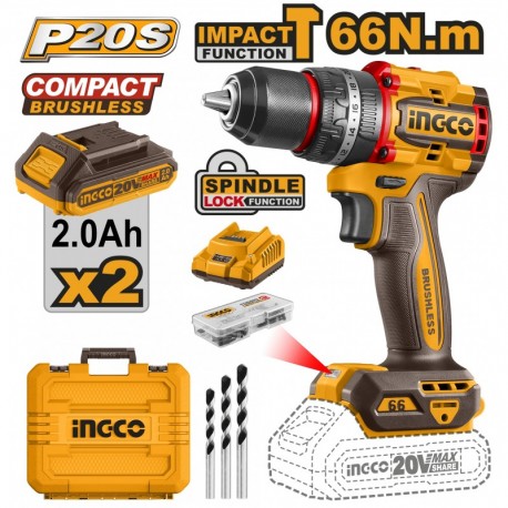 Aккумуляторный ударный шуруповёрт 2*2Ah 66N.m INGCO CIDLI20668