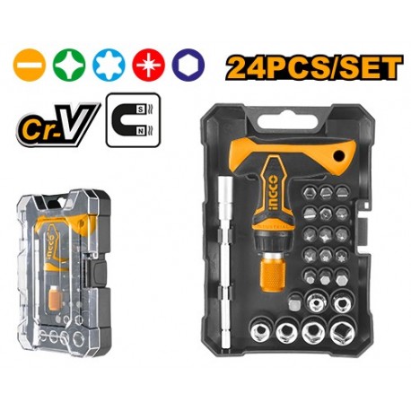 Удобный и надежный инструмент для монтажа и демонтажа резьбовых соединений имеет эргономичный дизайн, выполнена из прочного высококачественного пластика, надежно лежит в руке и позволяет выполнять работы быстро и легко. В комплект набора входят: намагниченный держатель для насадок, т-образная рукоятка, насадки 6.35x25мм 9шт, хром-ванадий: SL4, SL5, SL6, PH1, PH2, PH3, PZ1, PZ2, PZ3, адаптер 4-6 мм (25 мм ) и гнездовой адаптер 1/4'': 5,6,7,8,9,10, пластиковая упаковка.